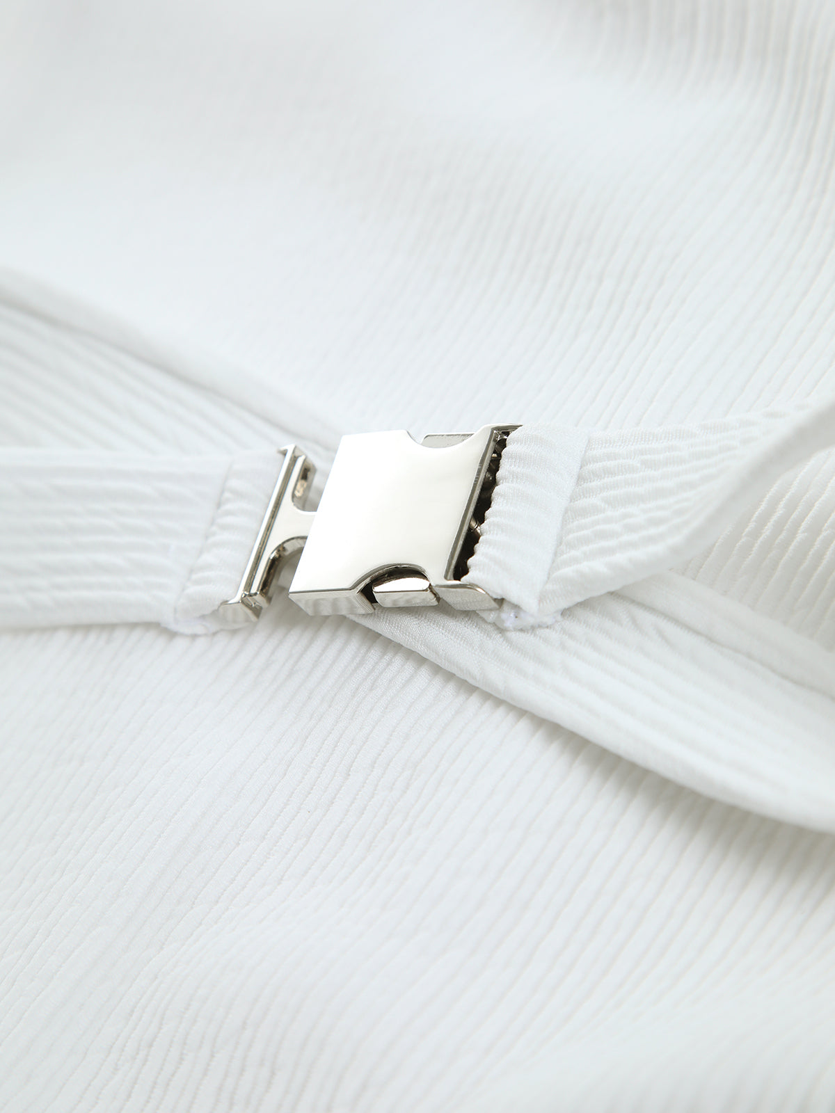 Ce maillot une pièce sublime la silhouette avec son décolleté profond et sa ceinture intégrée, pour une touche sophistiquée et flatteuse.